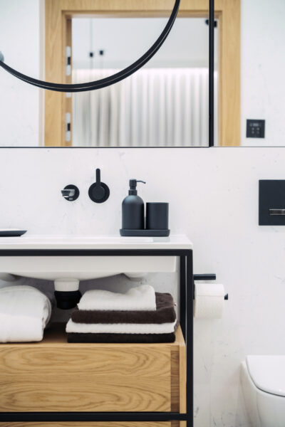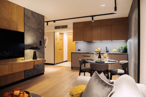Zarówno ten wzorcowy apartament, jak i wszystkie pozostałe w naszej Inwestycji zostaną wykonane z materiałów najwyższej jakości, zgodnie z najnowszymi trendami.