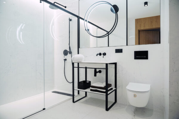 * kabiny prysznicowe PORCELANOSA oraz HUPPE
